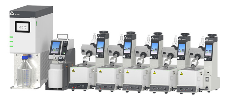 高效冷凝、減少污染 陣列旋轉(zhuǎn)蒸發(fā)儀可以選擇 eSR 系列溶媒回收儀用于溶劑蒸汽冷凝回收,溶媒回收儀的多級(jí)直接冷凝技術(shù)可以將溶劑蒸汽高效的液化收集,減少溶劑蒸汽排放。eSR 系列溶媒回收不需要添加冷卻循環(huán)液,也不需要連接玻璃冷凝器,開(kāi)機(jī)即用,操作維護(hù)更簡(jiǎn)單。